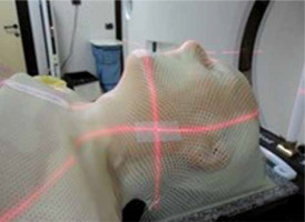 Traditionally syngo.CT-Liver-Analysis software is used for liver segmentation and for the identification of its vascular territories and subterritories, especially for liver surgery. Radiologists use this software to calculate and correct liver volumes, to compare resected and residual liver volume, for the segmentation of liver vessel tree structures, and to visualise tumour position in relation to vessels. Our goal was to find a new field of activity for this software. Radiotherapists and radiologists should communicate more with each other, especially because radiologists often have little knowledge about radiotherapeutic procedures. Limitations of this study are the small patient numbers and the use of only one radiological software package. In terms of time, we have seen that the method with the syngo.CT-Liver-Analysis software takes longer. The fastest method remains the simplest at present, although it must be said that the sensitivity decreases in comparison. Radiation therapy for head and neck cancer has evolved and has moved from 3-D conformal radiotherapy (3D-CRT) to intensity-modulated radiotherapy (IMRT). The main disadvantages of IMRT are the time-consuming treatment planning process and the larger number of multiple fixed-angle beams and monitor units (MUs), which increases the treatment delivery time. Volumetric modulated arc radiotherapy (VMAT) is a new radiation therapy technique in which treatment is delivered using a continuous arc motion of the gantry with simultaneous variation of the multi-leaf collimator (MLC) position, gantry speed, and dose rate with the ability to produce highly conformal plans in a short delivery time. In our institution oropharynx tumours are treated with sequential VMAT or VMAT-simultaneous integrated boost (SIB-VMAT) with Raystation software (Figure 6A and 6B). There are many fractionation schedules across institutions, but the most commonly prescribed doses are biologically equivalent to 70 Gy to gross disease and 60/54 Gy to suspicious nodes. At our institution we preferer a simultaneous integrated boost (SIB) with VMAT technique in which different dose levels are assigned to the various target volumes – dose 66/2.2 Gy to the GTV and a margin of protentional microscopic spread and positive neck nodes and 54/1.8 Gy to the clinically negative nodal regions. Thermoplastic masks are used to keep the patient in the exact position (Figure 7). The dose and fractionation may also be influenced by inclusion or exclusion of concurrent chemotherapy. Gross target volume (GTV-T) is defined by the radio-oncologist as the extent of the primary tumour, shown by imaging studies and physical examination, with margin of 5 mm around the obtained clinical target volume (CTV-T). Gross nodal disease is defined as focal nodal necrosis or heterogeneity, or as short-axial diameter > 10 mm (GTV-N) plus a margin of 10 mm for potential direct routes of microscopic spread (CTV-N) as reported in the DAHANCA guidelines [10]. Hence, the GTV and CTV are included in planning target volume (PTV) to account for patient setup errors. The CTV does not overlap uninvolved critical adjacent structures such the optic nerves or chiasm, even if the physician planned to minimise the dose to these structures. This is an issue for potential interobserver and intraobserver variability. Some problems in the tumour boundary definition on CT derives from the difficulty to separate the tumour from the peritumoral oedema area, which is excluded from the region of interest (ROI). For this reason, magnetic resonance imaging (MRI) is often used, which is more sensitive than CT in distinguishing tumours from normal adjacent structures. The use of MRI can reduce inter-observer variability [11]. Also, fluorine 18 fluorodeoxyglucose (18F-FDG) positron emission tomography (PET) provides not only anatomy but also noninvasive functional imaging and biological metabolism. FDG-PET is effective for defining GTV in radiotherapy planning for squamous cell carcinoma of the head and neck [12]. Tumour volume in HNC is often more strongly associated with local control than tumour stage. Variation in TV or GTV contouring are the greatest geometrical uncertainties in the entire treatment care process, and inadequate delineation can compromise the curative intent. In this context multidisciplinary collaboration between surgeons, radiologists, and radiation oncologists is mandatory to achieve improved tumour control via better TV definition.