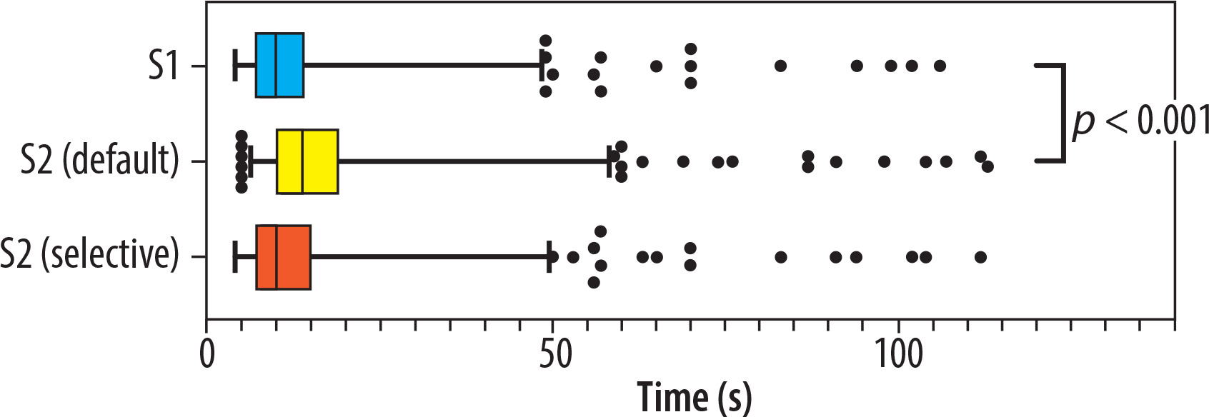 Distribution of readers’ chest computed tomography evaluation times in S1 and S2 under default and selective approaches